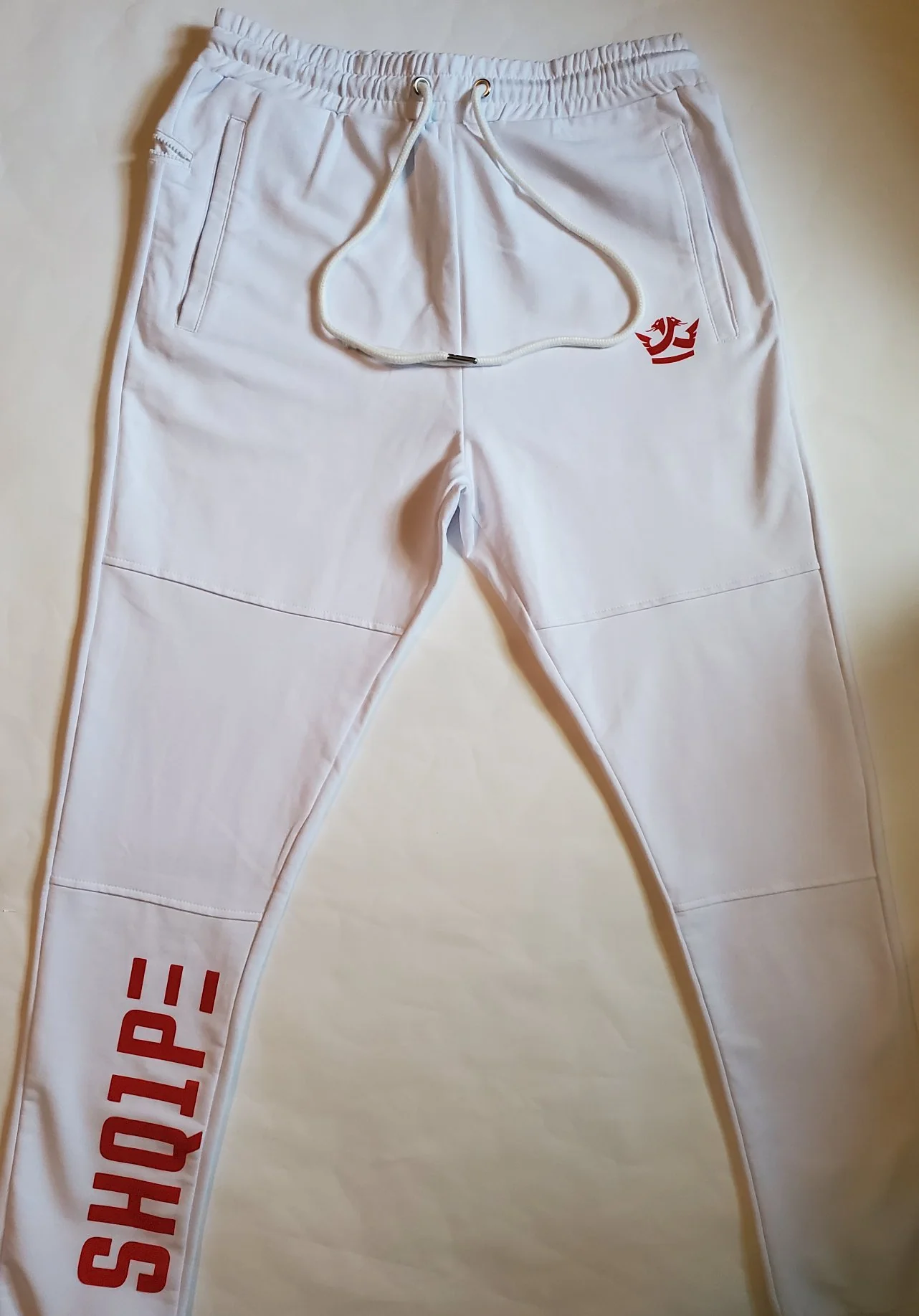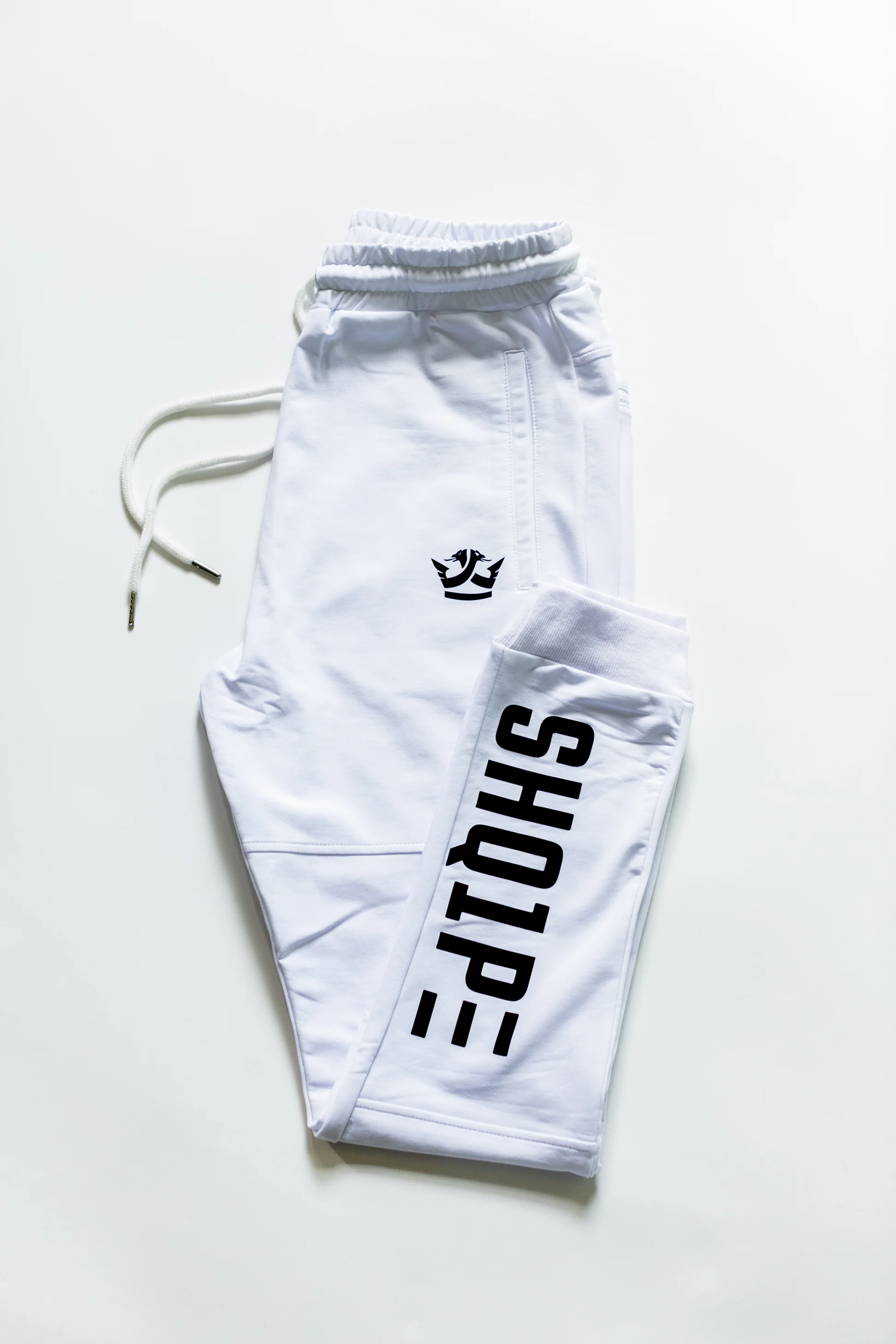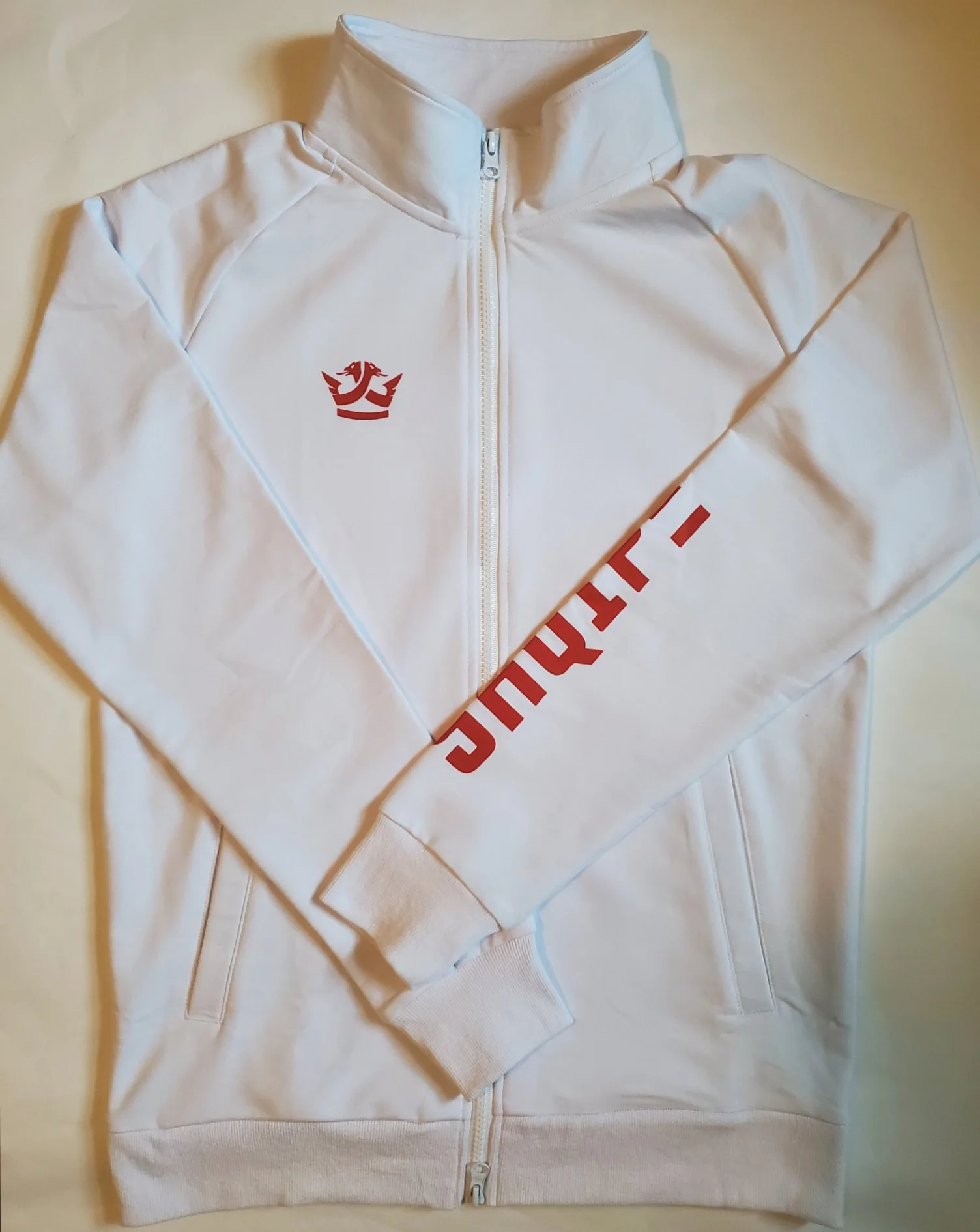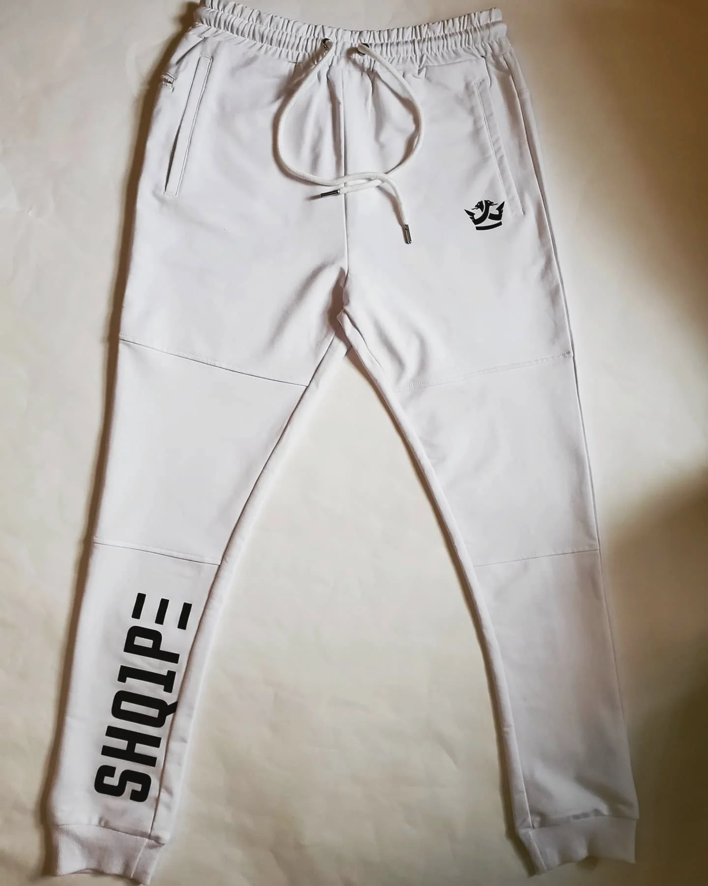 Streetwear full tracksuit in white color with black logo. Logo reflects in light this tracksuit is made of soft, moisture-wicking fabric to keep you dry and comfortable.